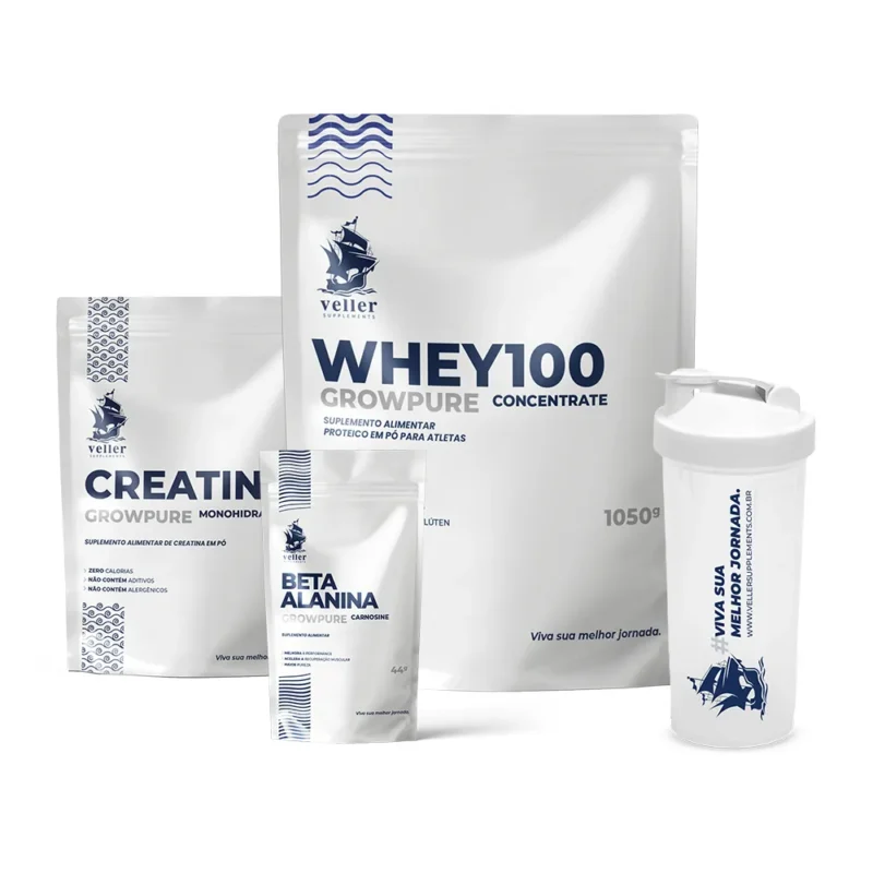 Combo WHEY100 Growpure 1050g + Creatina Growpure 360g + Beta Alanina + Coqueteleira